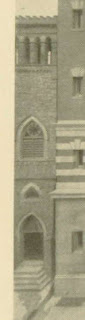 The only picture of the church with any detail is from an old picture of the building next door from 1898. Just the bell tower is visible. Image from the Philadelphia Architects and Buildings Project. |