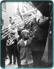 Photophiles who know Louis Faurer primarily for Cold War-era New York City street scenes might find a few surprises in a retrospective of his work opening at the Art Museum this weekend. The late Philadelphia-born photographer got his start shooting, logically enough, right here in Philly, and about 20 pieces in the exhibit -- which compiles more than 100 images spanning Faurer's 46-year career -- show our developing metropolis around the end of the Great Depression. The 1937 photo People Crossing the Street depicts what looks like the old 23 trolley heading across 12th and Market through a crowd of pedestrians. Happy, taken the same year on Cantrell Street in South Philly, is a tight upward shot of a brass band clustering around a small child whose priceless expression clearly reveals that he'd rather be elsewhere. While the bulk of the exhibit will feature Faurer's trademark grainy black-and-whites from the Big Apple, about another dozen pieces are never-before-exhibited color fashion photos from Vogue and Harper's Bazaar. Like many photographers, Faurer funded his art through commercial work, a gig he hated but managed to excel in nevertheless.